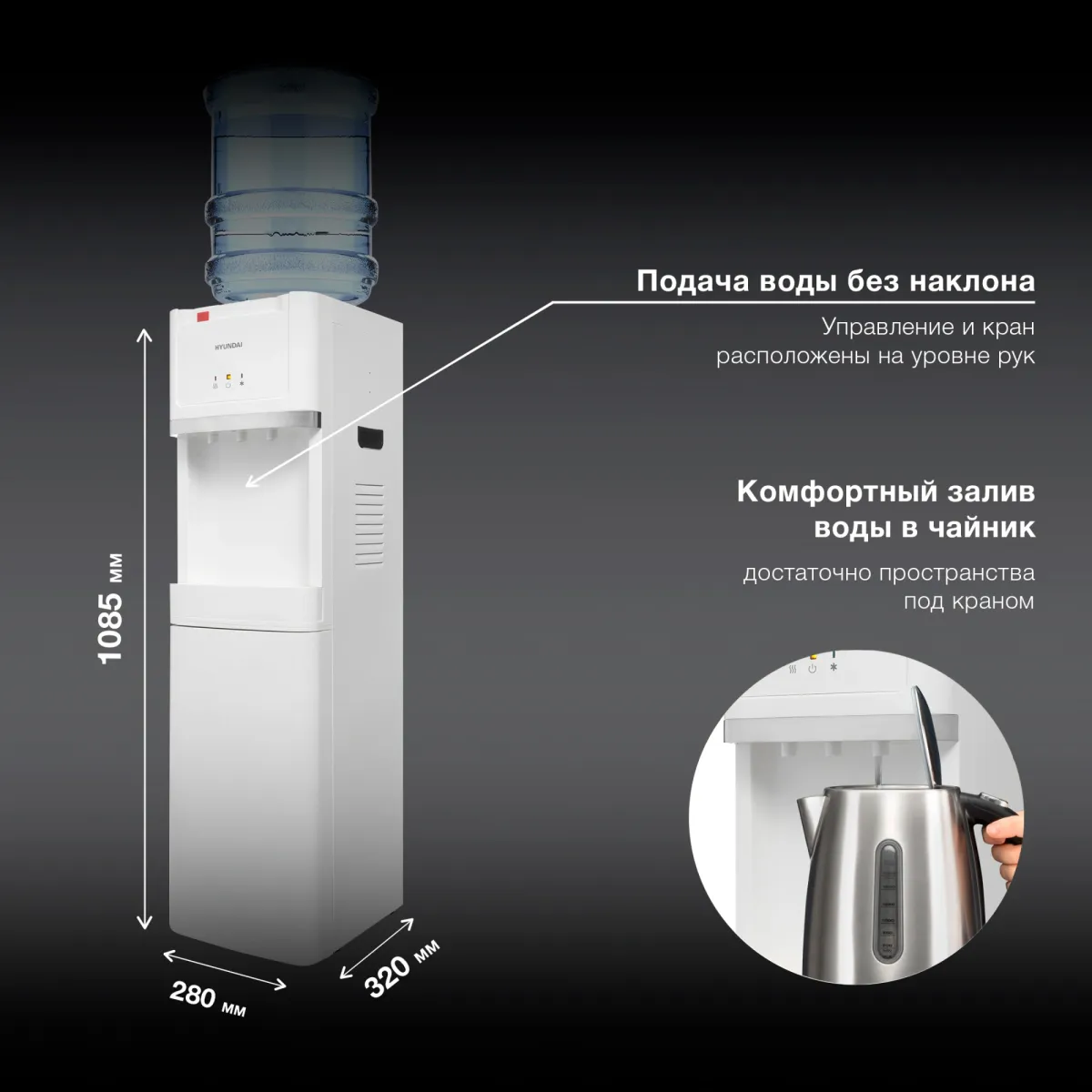 Кулер Hyundai H-WD3406E напольный электронный белый (H-WD3406E)
