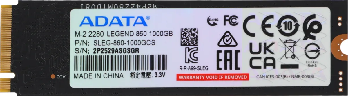 Накопитель SSD A-Data PCIe 4.0 x4 1Tb SLEG-860-1000GCS Legend 860 M.2 2280 (SLEG-860-1000GCS)