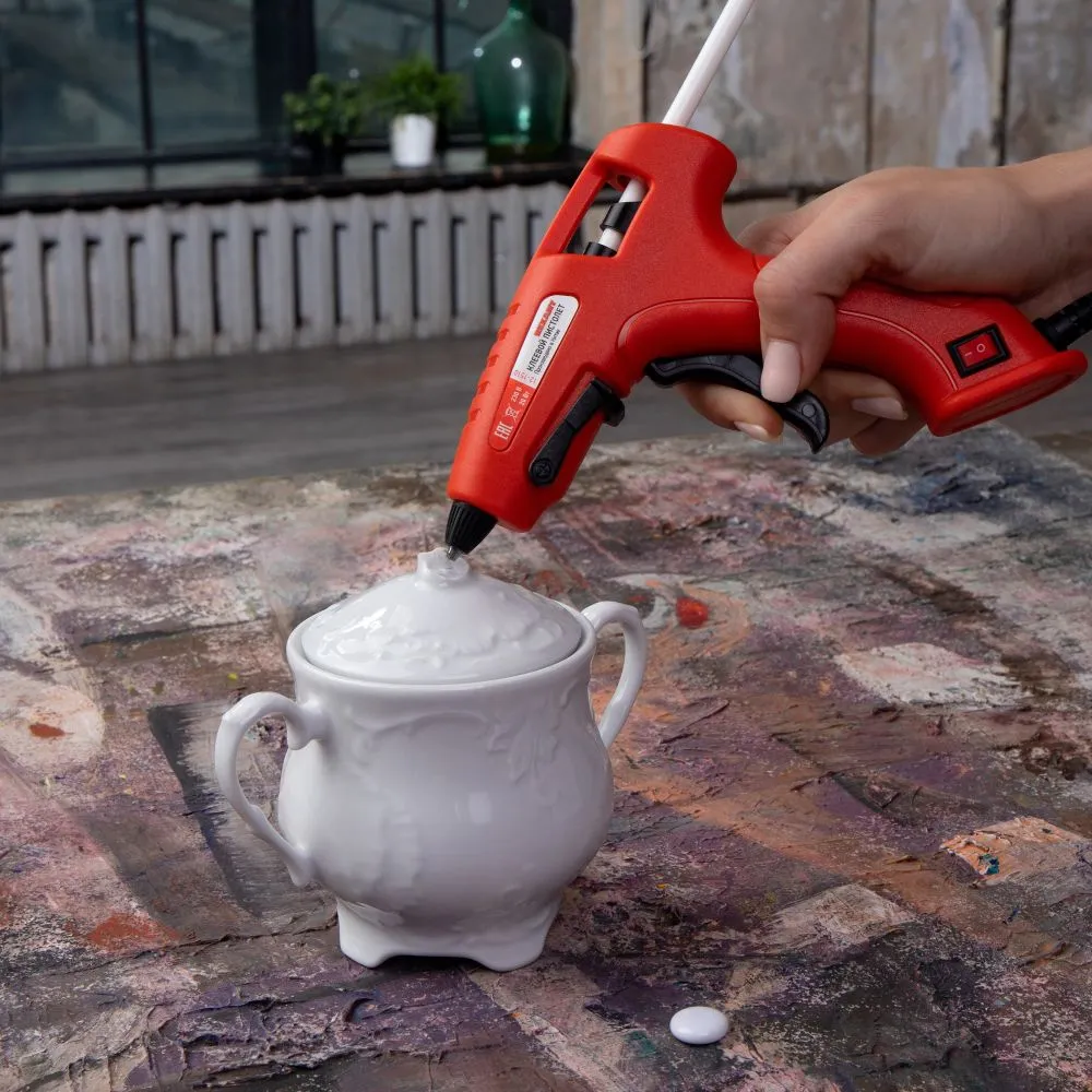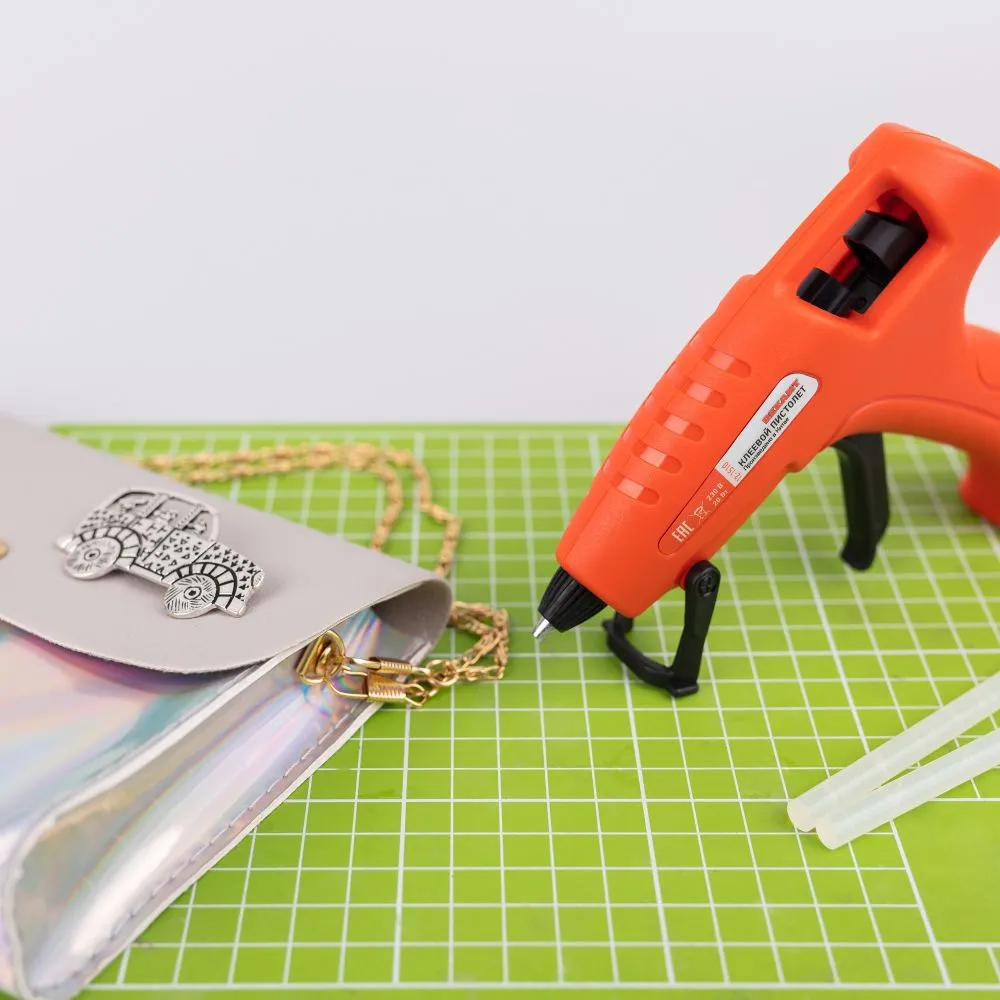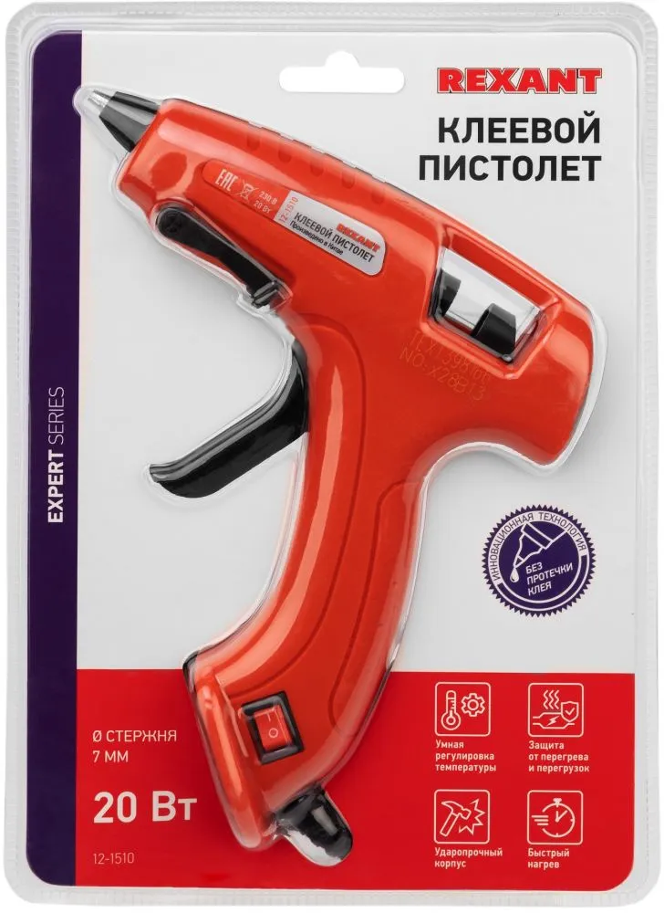 Профессиональный клеевой пистолет 20 Вт создан с применением новых запатентованных разработок. В т.ч. плавильная камера: помогает избегать переполнения, утечки и обратного тока клея. Керамический нагреватель разогревает прибор всего за 3-5 мин, при этом э -
