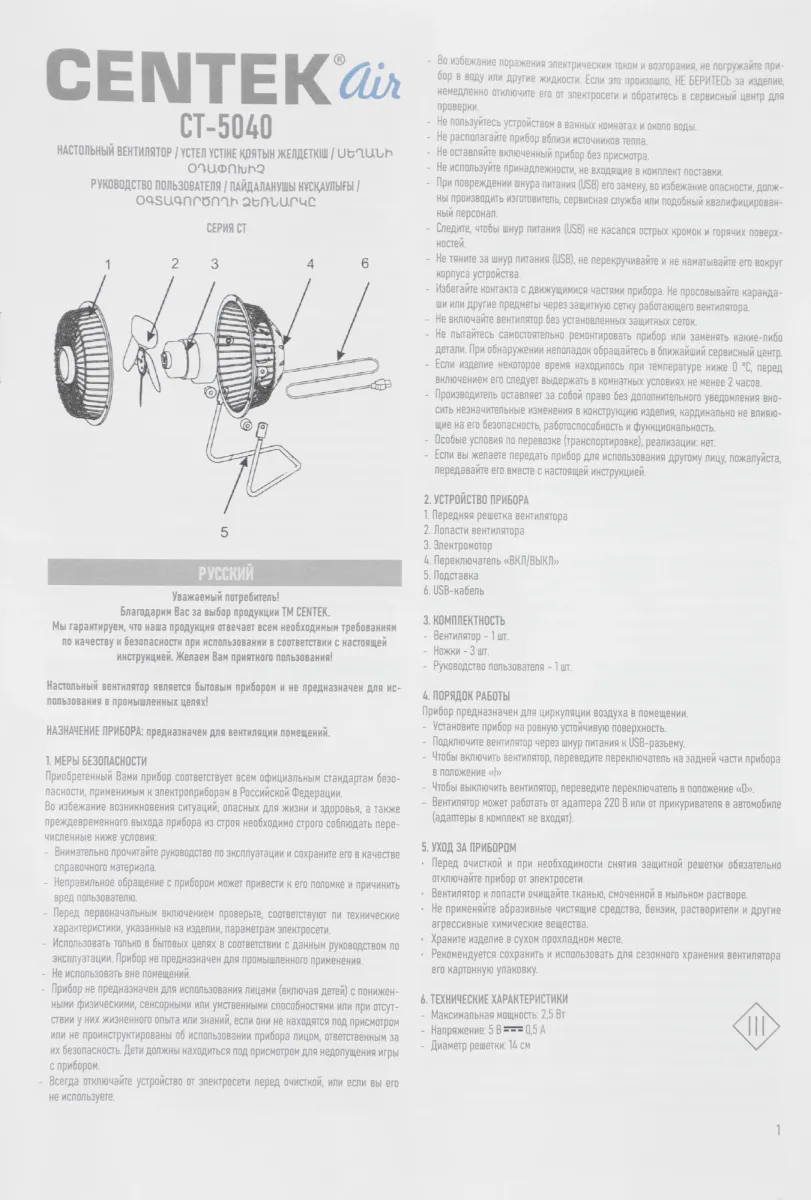 Вентилятор настольный Centek CT-5040 2.5Вт скоростей:1 черный (CT-5040)