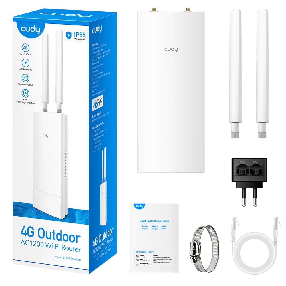 Точка доступа Cudy LT700 OUTDOOR AC1200 10/100/1000BASE-TX/4G белый (LT700 OUTDOOR)