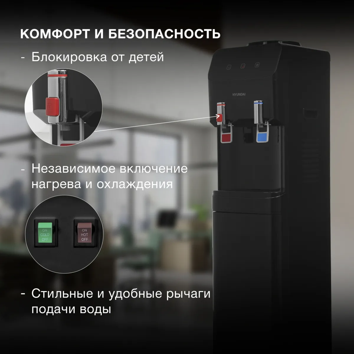 Кулер Hyundai H-WD4240E напольный электронный черный (H-WD4240E)