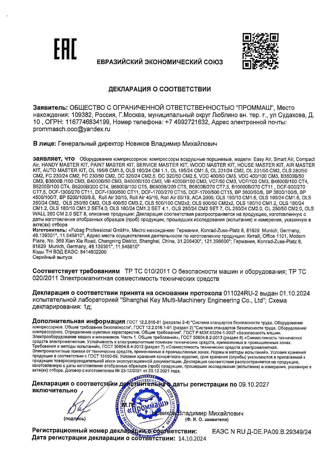 ЕАЭС N RU Д-DE.РА09.В.29349/24 | 13.10.2024 | 08.10.2027 |