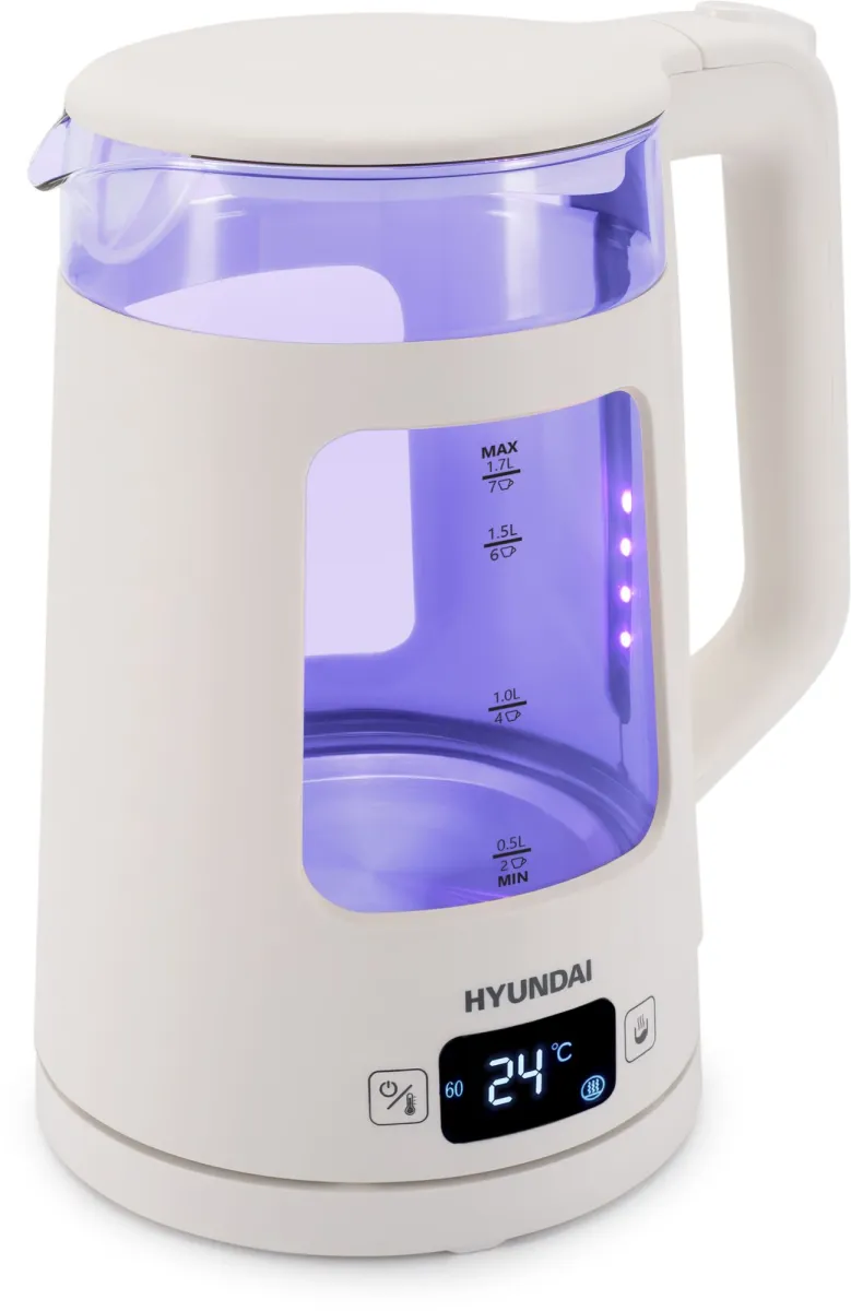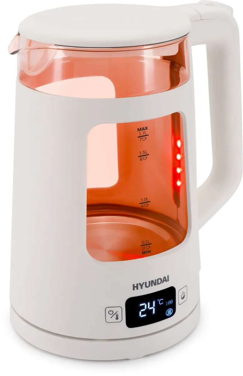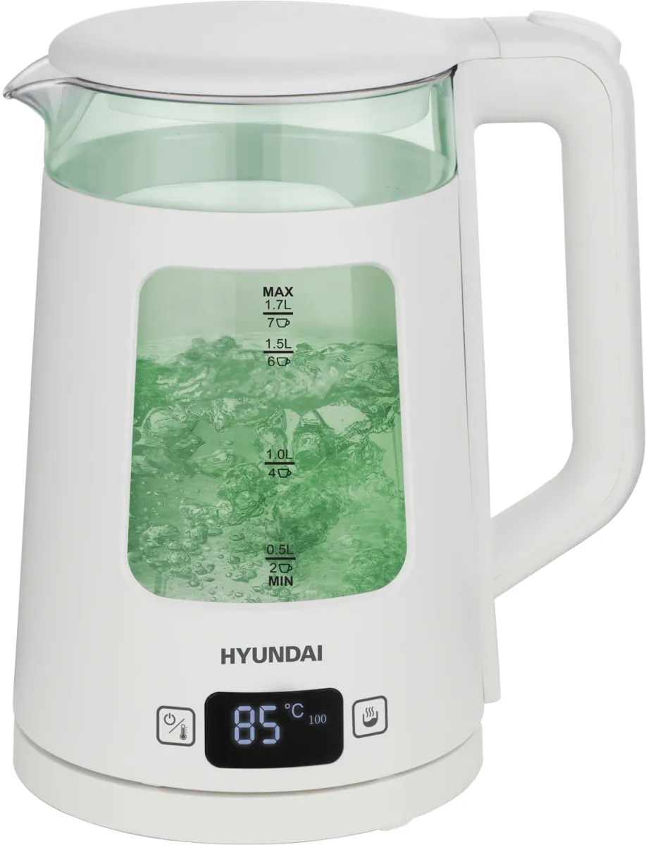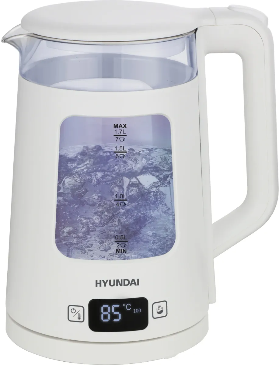 Чайник электрический Hyundai HYK-G9407 1.7л. 2200Вт белый корпус: стекло (HYK-G9407)