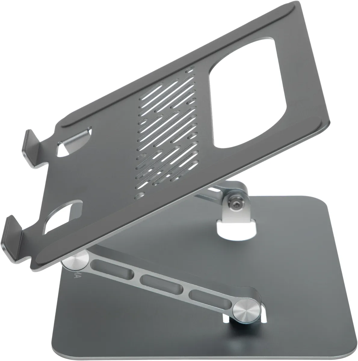 Металлическая подставка для ноутбука с прорезиненными вставками, которые препятствуют скатыванию ноутбука. Широкий диапазон настройки высоты и угла наклона позволяет легко подобрать оптимальное положение для работы. Совместима с ноутбуками диагональю до 1 -