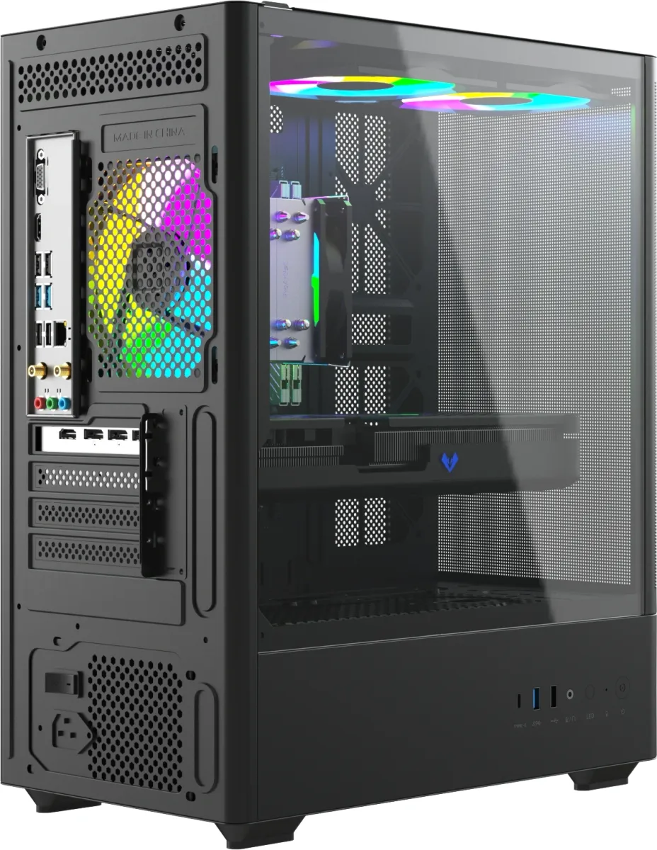 подсветка, прозрачная боковая панель, сетчатая передняя панель (Mesh) -
