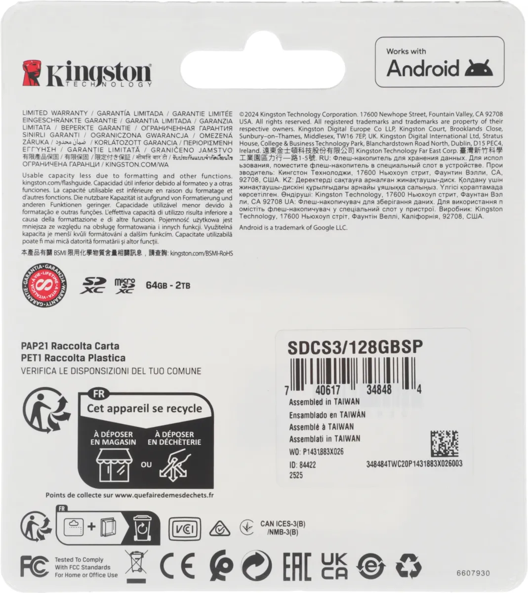 | Флеш карта microSDXC 128GB Kingston SDCS3/128GBSP Canvas Select Plus w/o adapter | ОТКАЗ_Н ..ОТКАЗНОЕ | 04.06.2019 | 30.12.2029 |