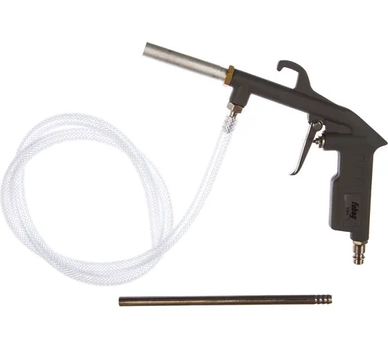 Пневмопистолет пескоструйный с шлангом. Предназначен для очистки поверхностей от грязи и ржавчины, а также снятия старых покрытий струей песка. Оснащен выносным шлангом, что позволяет использовать емкости с любым объемом абразивного вещества на значительн