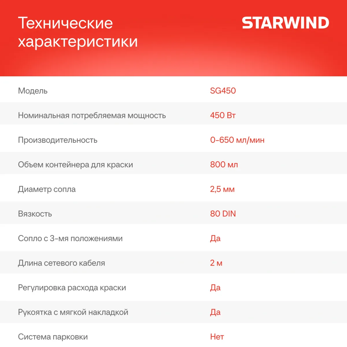 Краскопульт Starwind SG450 450Вт бак:800мл 650мл/мин