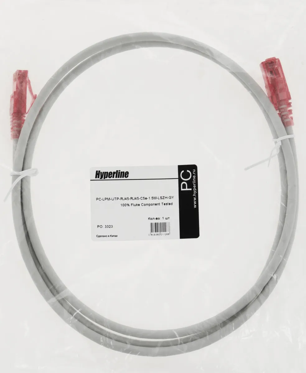 Патч-корд Hyperline PC-LPM-UTP-RJ45-RJ45-C5E-1.5M-LSZH-GY UTP RJ-45 вил.-вилка RJ-45 кат.5E (ML1737967)