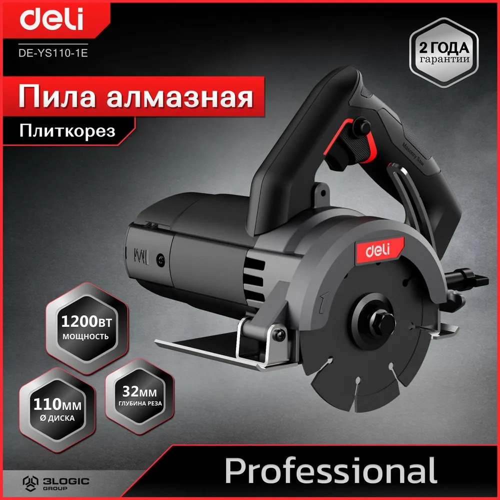 Плиткорез электрический (дисковая пила по плитке/мрамору/камню) Deli DE-YS110-1E (1300Вт, 13000об/мин, диаметр (DE-YS110-1E)