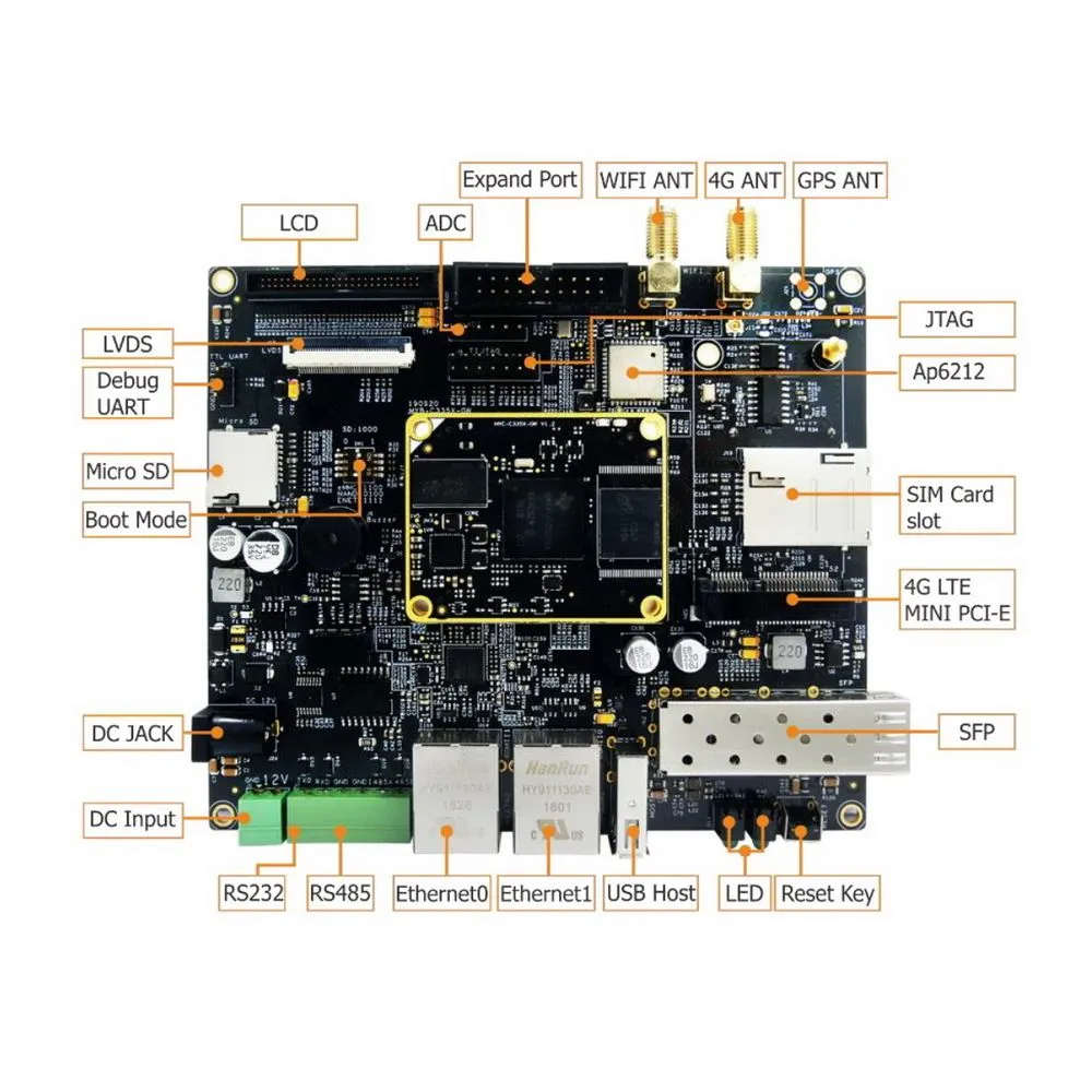 Плата разработки, инструкция, антенны WiFi/4G LTE, внешний адаптер питания, диск с ПО -