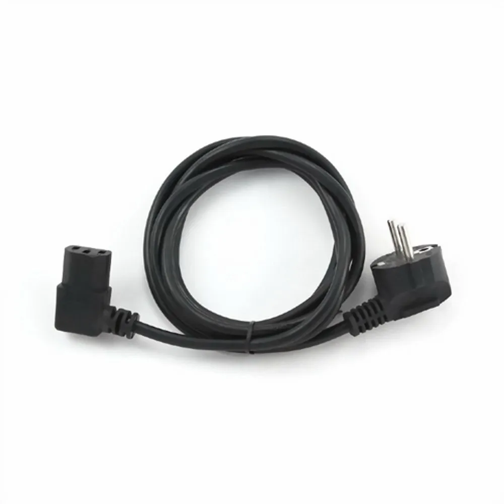 Для подключения ПК, мониторов и др.устр-тв с разъемом питания С14 к розетке Schuko. Разъем С13 под углом 90градусов. Трехпроводной кабель с сечением (3x)0.75мм и с заземлением. Сила тока до 10A. Одобрен VDE -