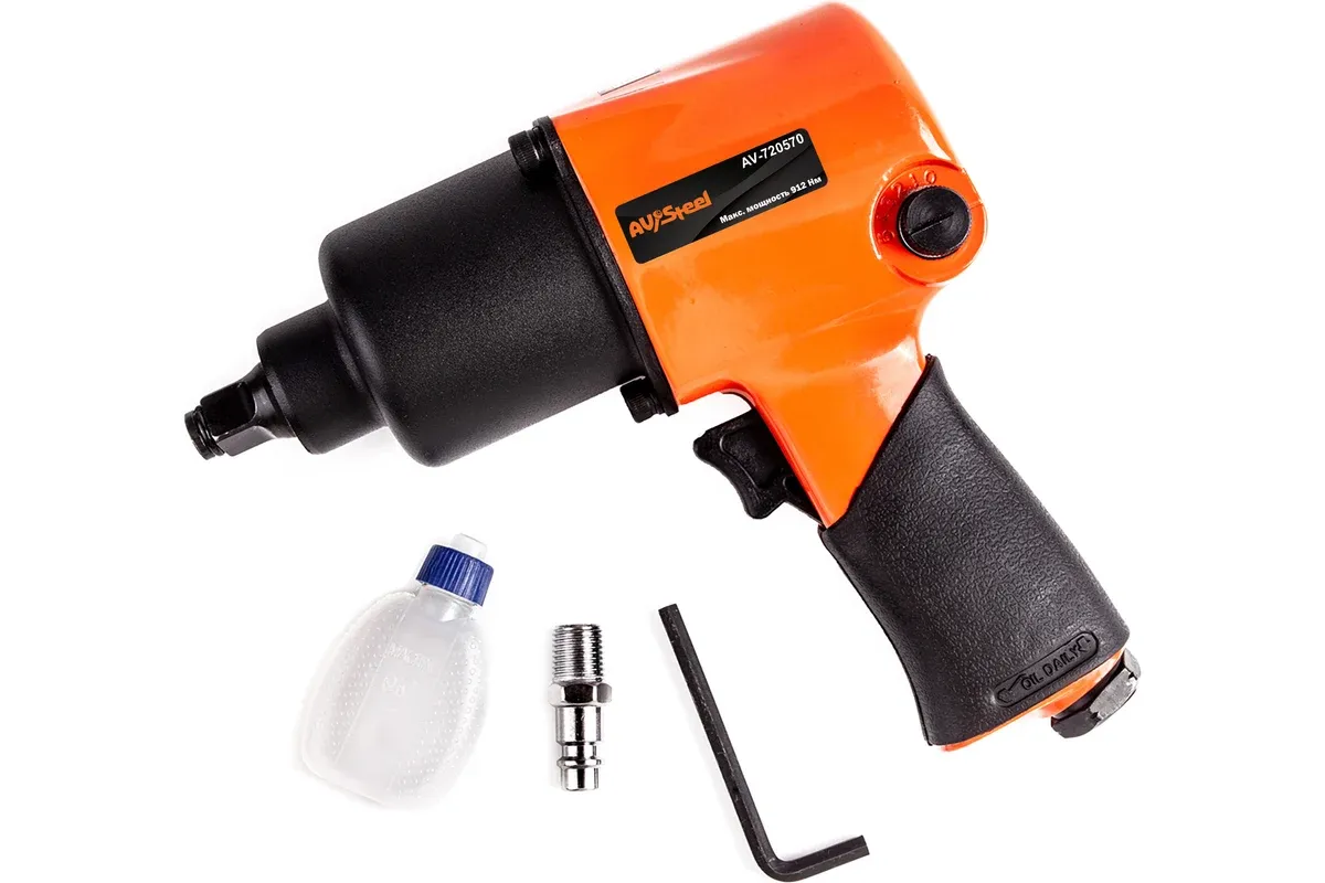 Пневмогайковерт AV Steel 1/2" 570Нм AV-720570 предназначен для работы с резьбовым крепежом. Эргономичная рукоятка с накладкой обеспечивает надежный хват, за счет чего достигается удобство работы. Небольшие габариты инструмента позволяют выполнять задачи в -