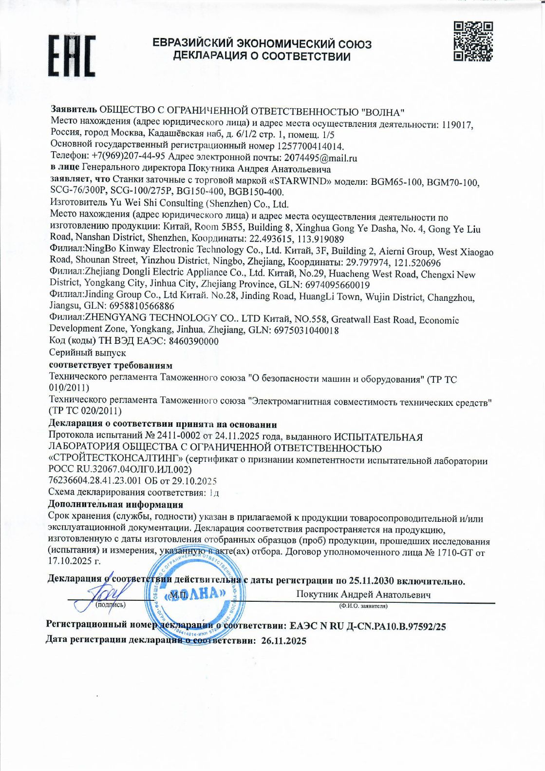 ЕАЭС N RU Д-CN.РА10.В.97592/25 | 25.11.2025 | 24.11.2030 |