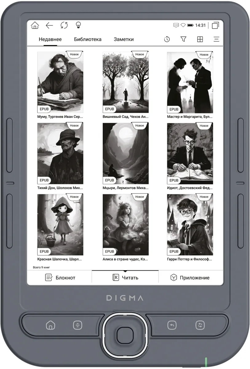 Электронная книга Digma Tome 6" E-ink HD Pearl 758x1024 600MHz 128Mb/4Gb/SD/microSDHC темно-серый