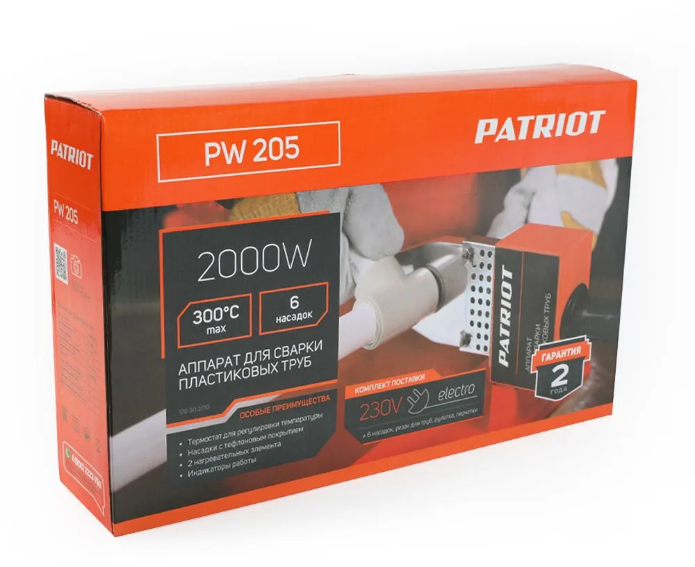 Сварочный аппарат для пластиковых труб Patriot PW 205 2кВт Тмакс.:300 парн.насад. 6насад. (170302010)