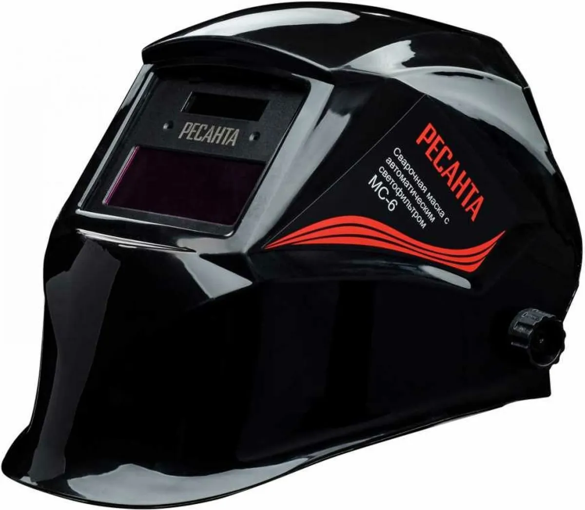 Сварочная маска РЕСАНТА МС-6 предназначена для защиты глаз от видимого, ультрафиолетового и инфракрасного излучения, а также для защиты головы и шеи от попадания искр при сварочных работах. Маска данного типа удобна, поскольку светофильтр автоматически за -