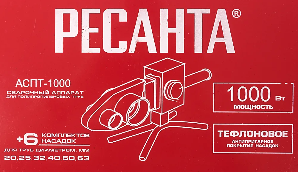 Сварочный аппарат для пластиковых труб Ресанта АСПТ-1000 1кВт парн.насад. (кейс в компл.)