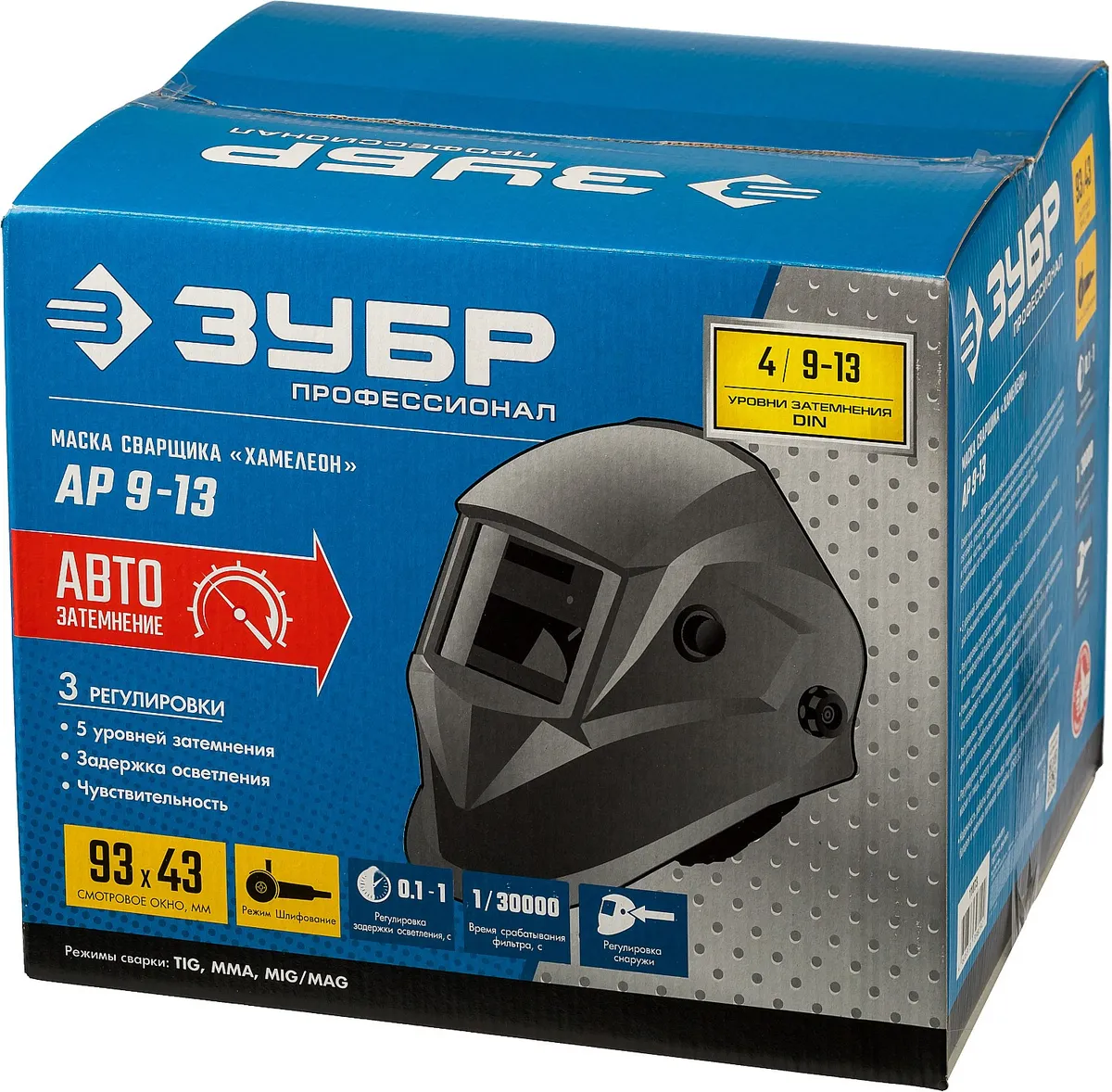 Маска сварщика Зубр АР 9-13 филь.:стекло кл.:1/1/1/2 см.экр.93x43мм серый (11073) (11073)