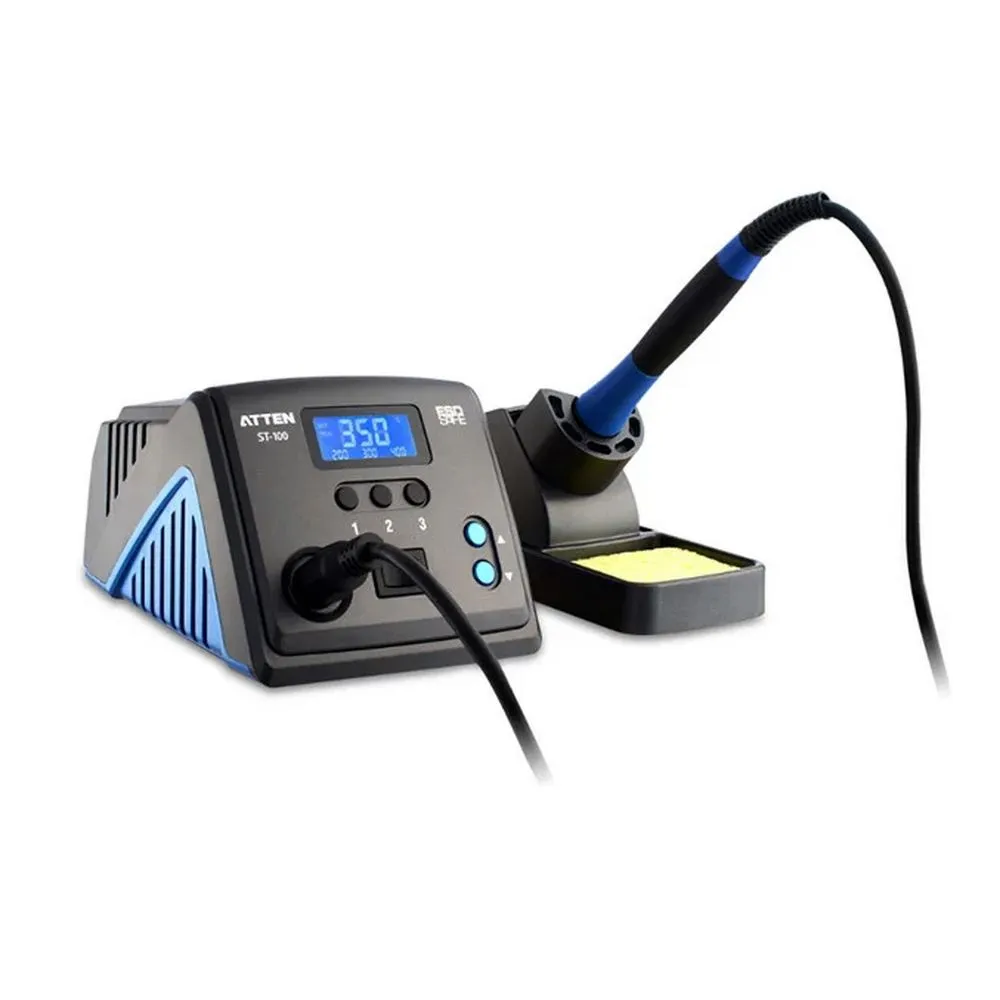 Паяльная станция с паяльником, инструкция, паяльное жало серии Atten AT800, подставка для паяльника, кабель питания, губка -