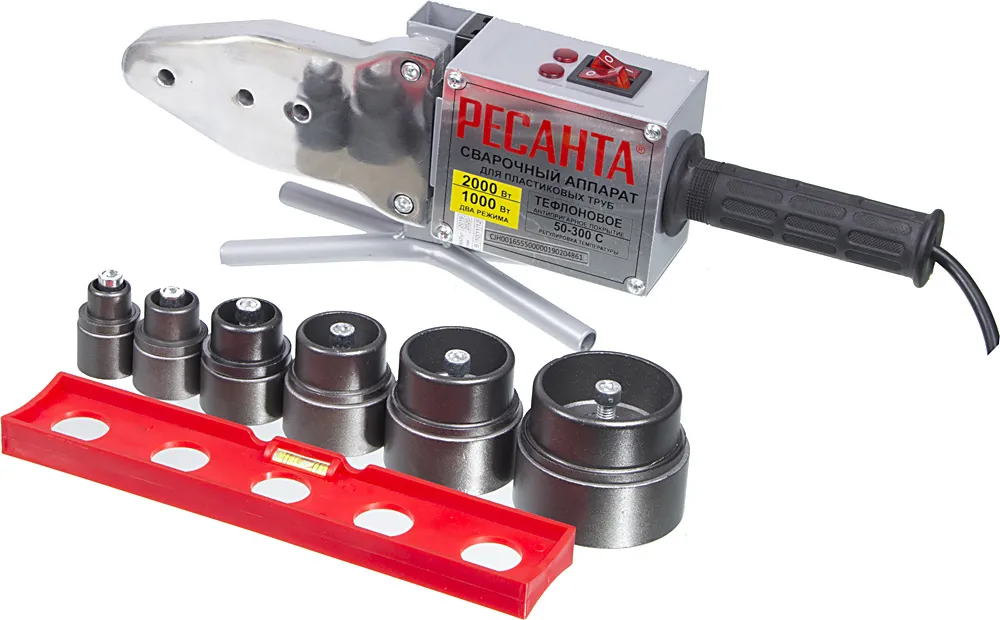 Сварочный аппарат для пластиковых труб Ресанта АСПТ-2000 2кВт Тмакс.:300 парн.насад. 6насад. (кейс (65/55)