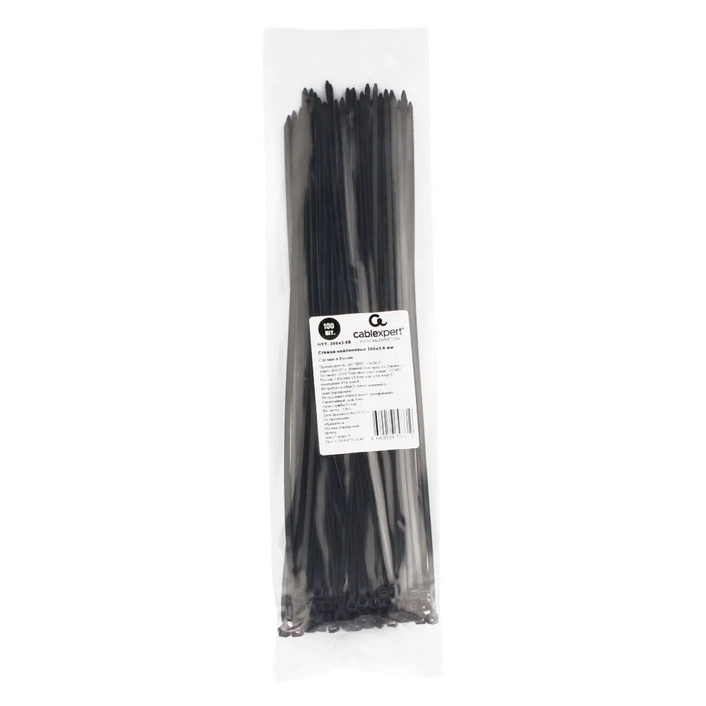 Аксессуары Cablexpert Стяжки NYT-300x3.6B пластиковые 300 мм х 3.6 мм, чёрные (100 (NYT-300x3.6B)