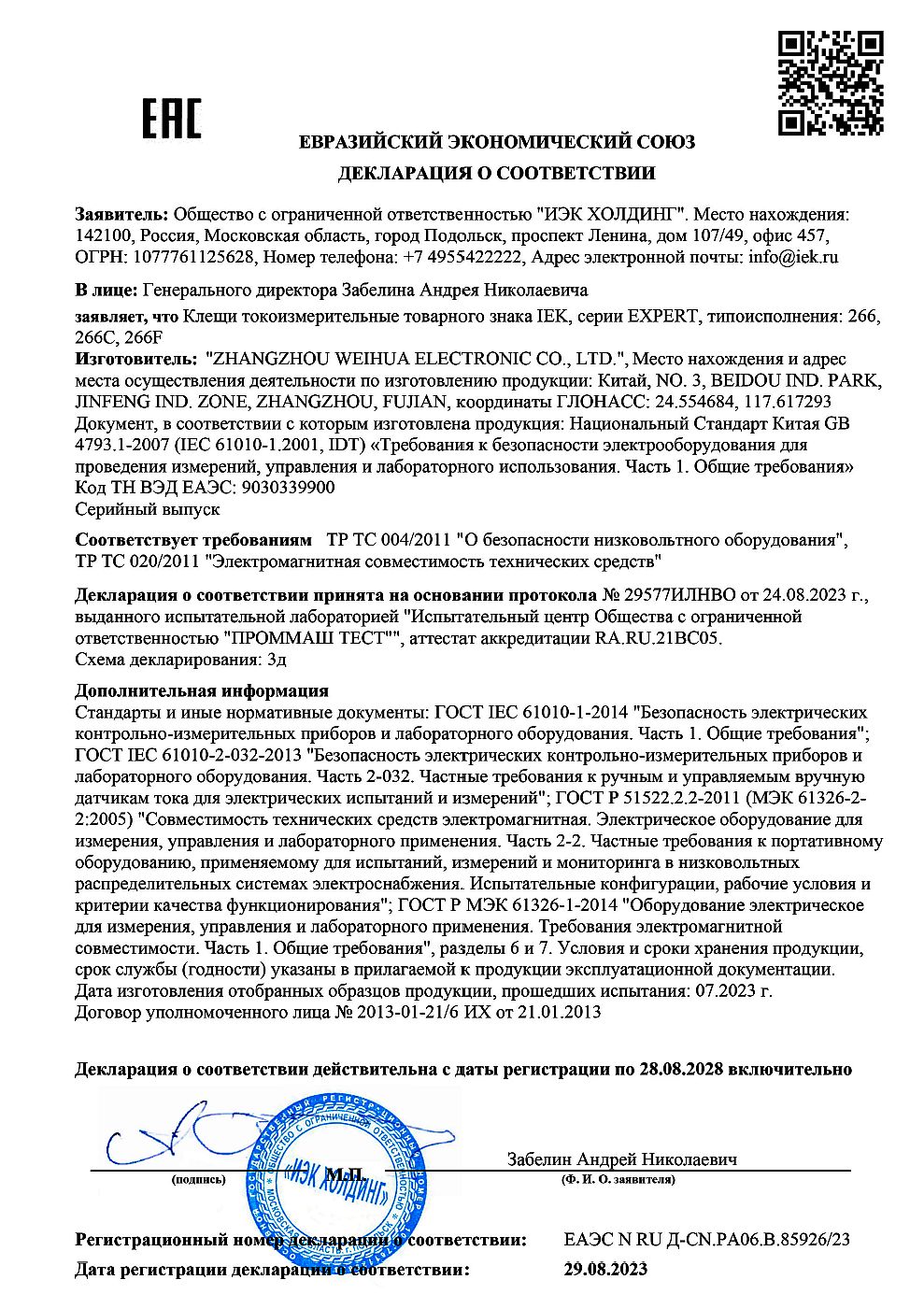 ЕАЭС N RU Д-CN.РА06.В.85926/23 | 28.08.2023 | 27.08.2028 |